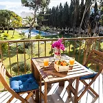 The 50 m^2 Enjoy La Carihuela Beach At 4 Min.Terrace & Pool features views of the garden and is situated 3.6 km from Palacio de Congresos. Offering access to an outdoor swimming pool, the apartment is within walking distance of Puerto Marina Benalmadena OFFICIAL.